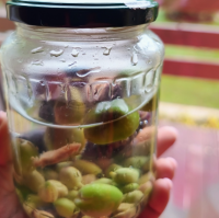 Rozhodla som sa ich spracovať tak, aby boli jedlé, aj keď medzi nimi boli aj malé divé olivy, ktoré sa zvyčajne používajú skôr na olej. Všetky som "rozbila" a začala denne premývať.